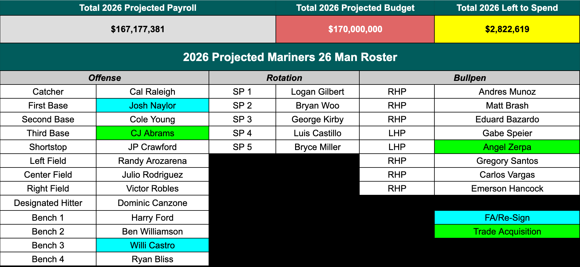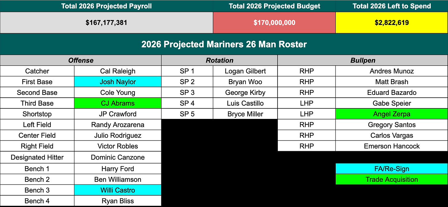 Off-Season Captain’s Log - Part 1: 2026 Mariners Roster As Is